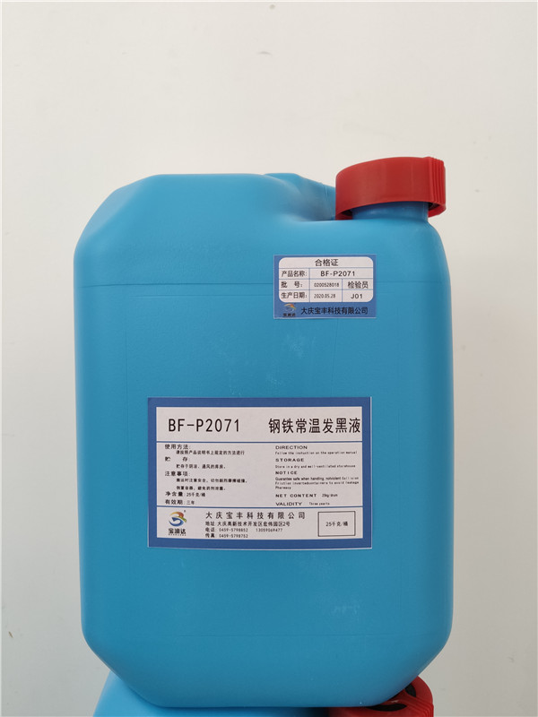 5、附著力牢固。防腐性強,發(fā)黑后工件表面色澤隨存放時間延長而加深。