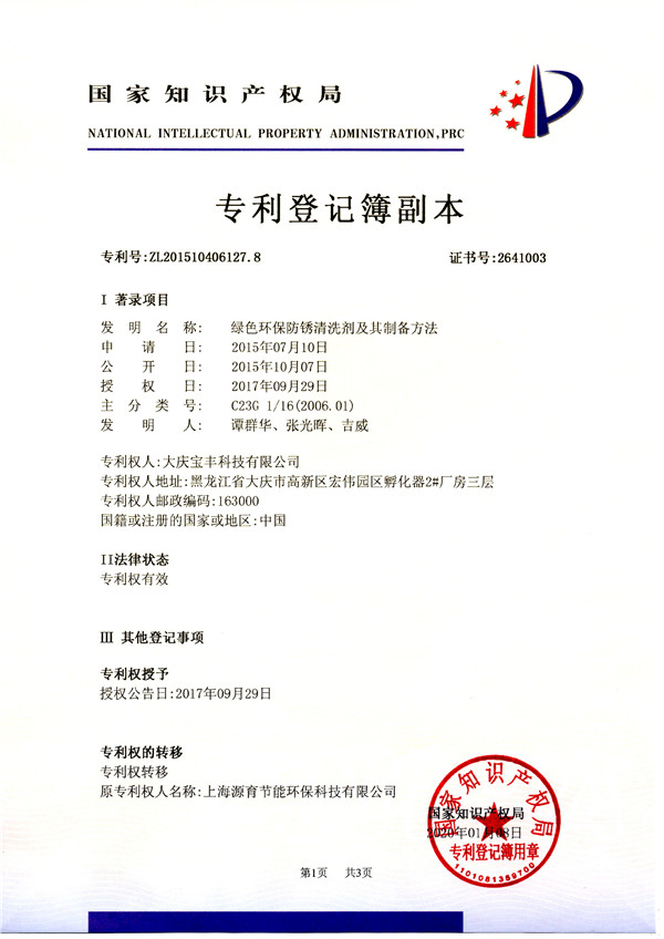 專利登記薄副本
